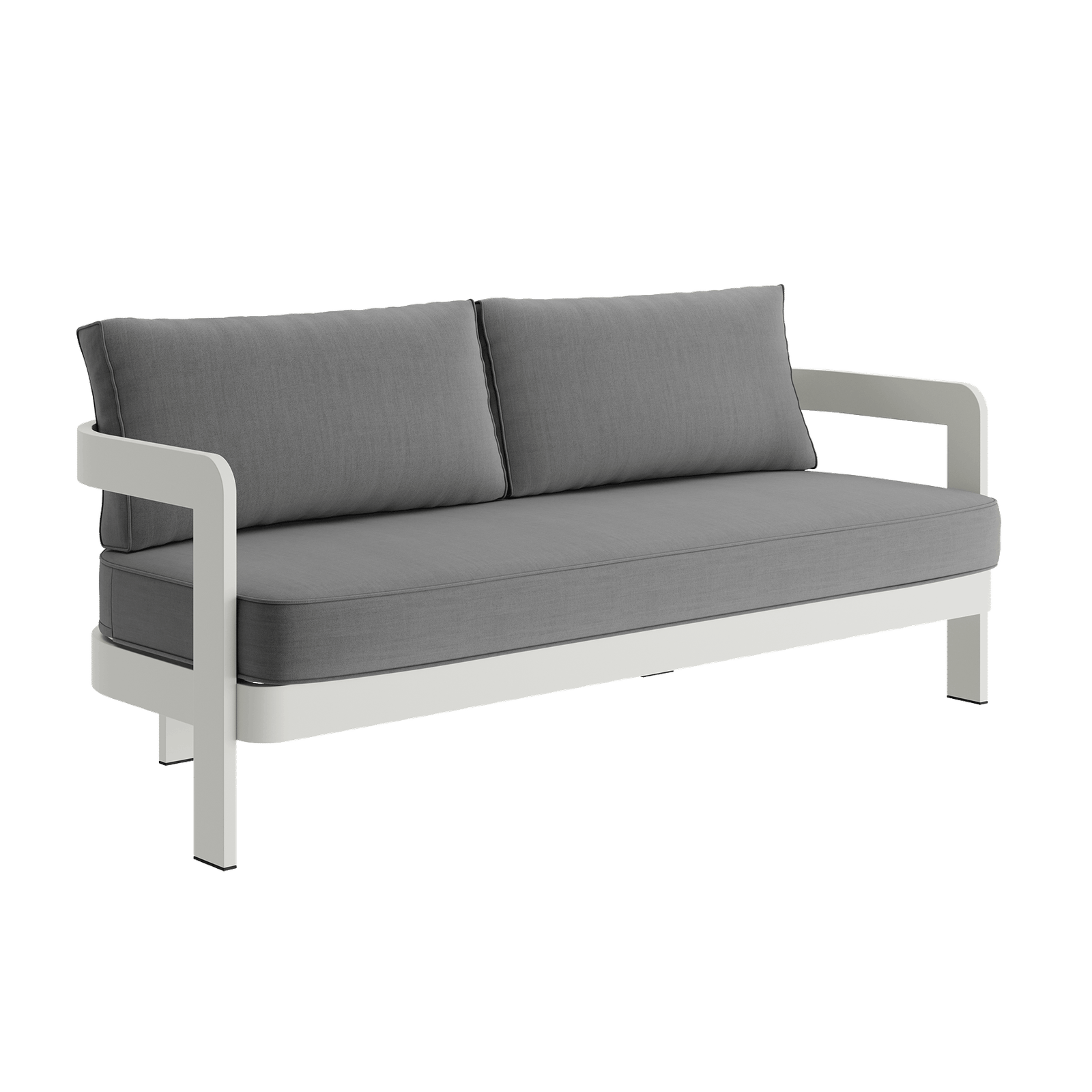 The N3 collection pays homage to the modern concept of proportion and architectural intricacy. The N3 Sofa is meticulously constructed from robust aluminium with a Stone powder coated finish. Its clean lines are juxtaposed with its gracefully curved backrest, accompanied by two supporting side legs and and two subtle legs at the rear.