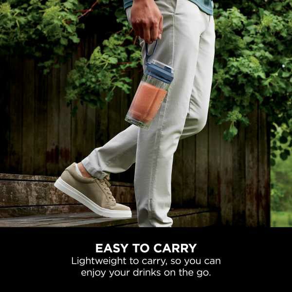 The rechargeable motor base holds enough charge for up to 25 blends. Designed for life on-the-go with a leak-proof lid, sip spout and carry handle. Take the cup and base to blend on-the-move or twist it off the base to use as a travel cup.